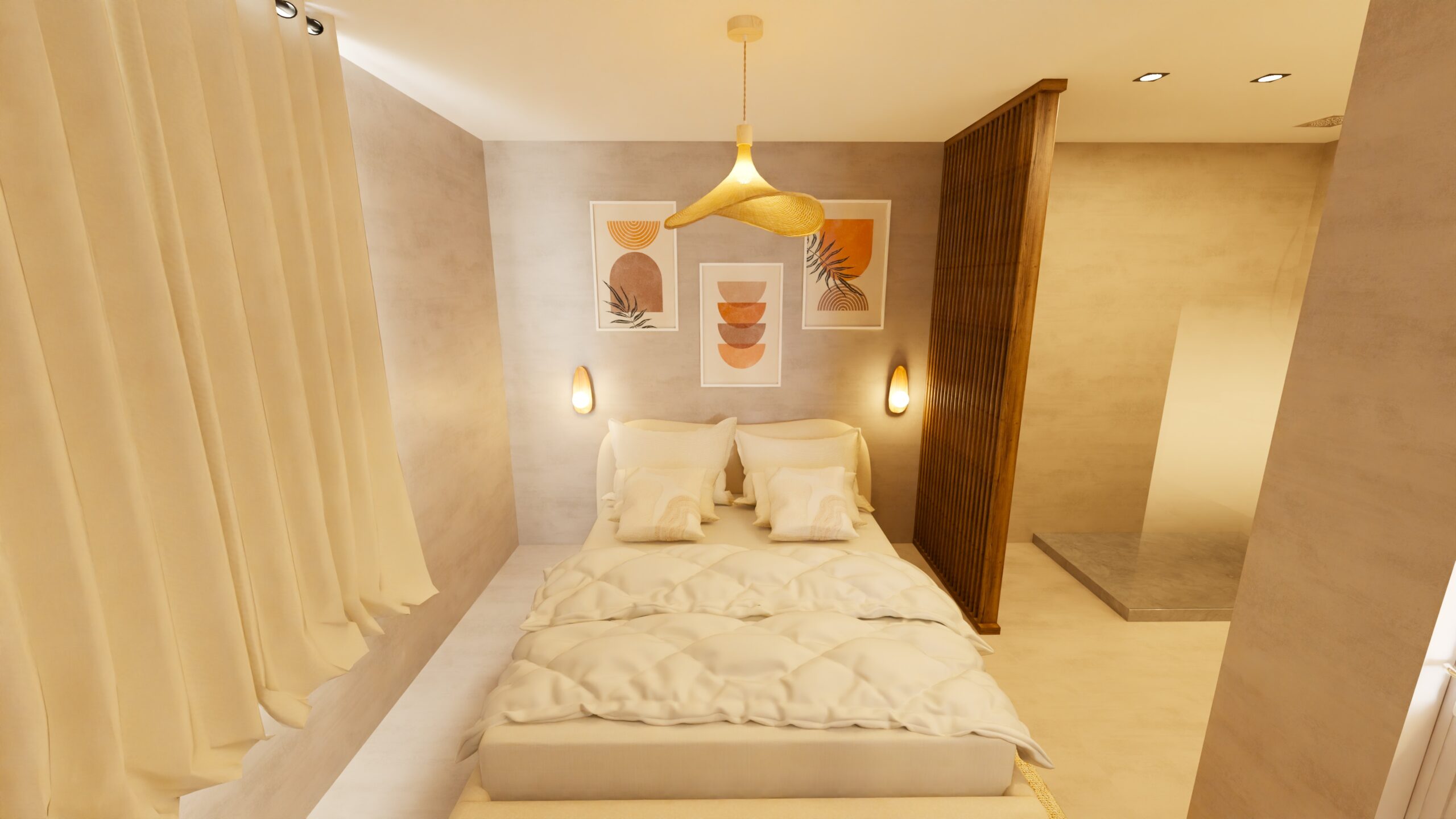 Un projet pensé autour de matières naturelles, de teintes claires et d’une atmosphère douce et chaleureuse.